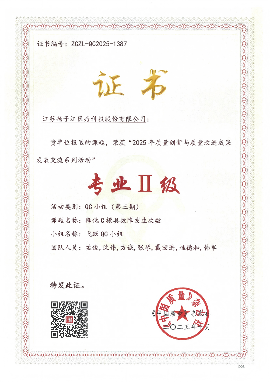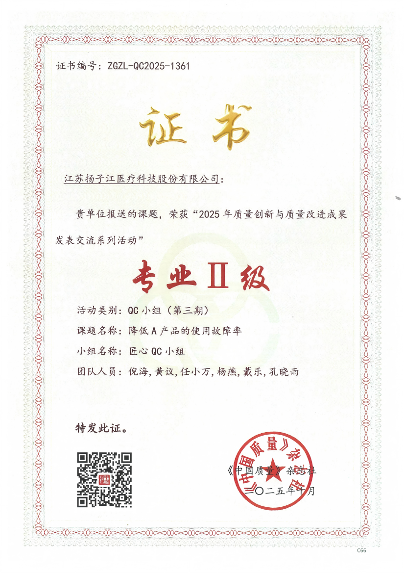 2025年中國質(zhì)量協(xié)會QC成果交流專業(yè)Ⅱ級成果獎